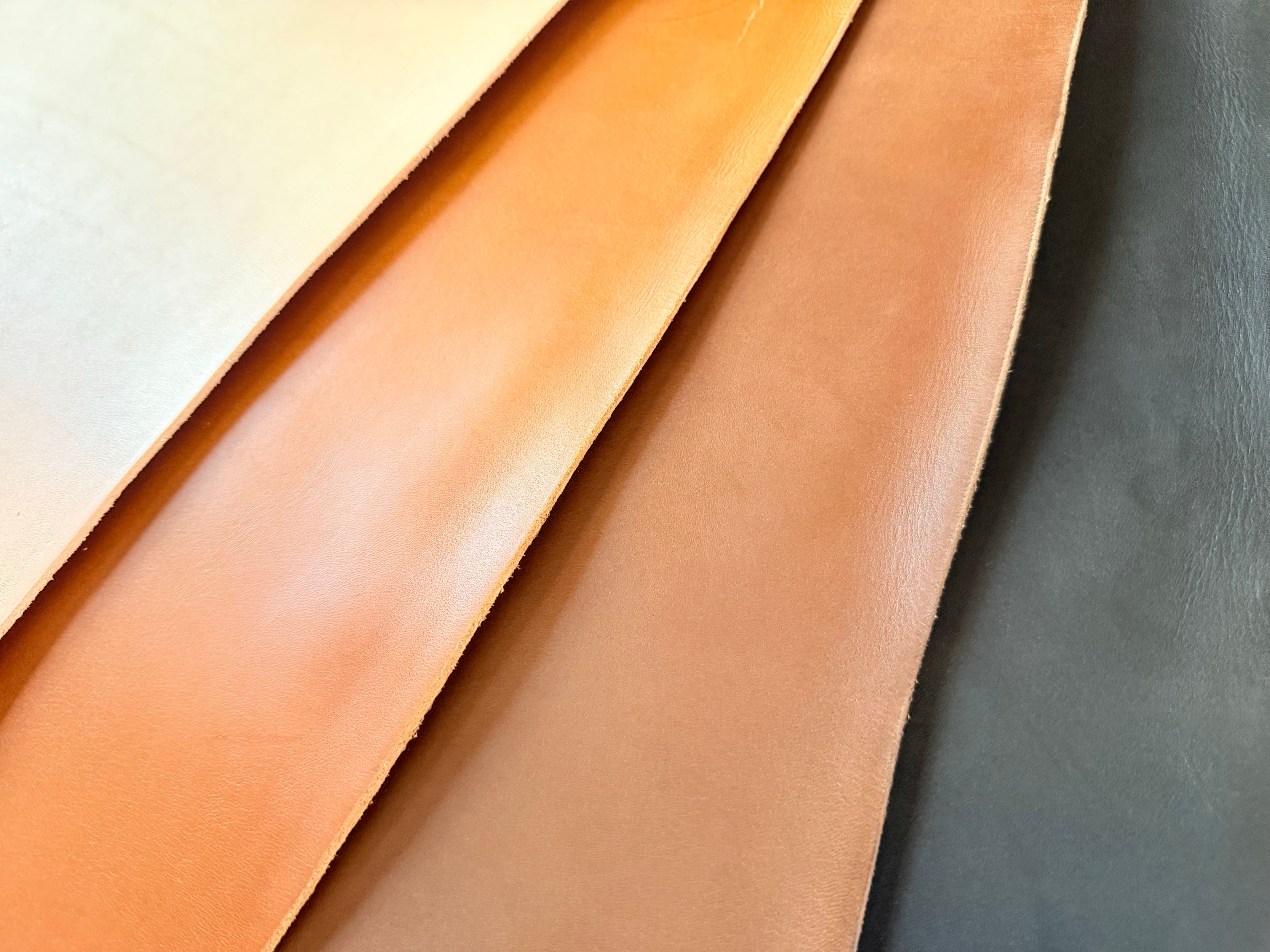 植物タンニン鞣し(フルベジタブルタンニン) 化学薬品を使わず、植物由来の成分で丁寧に鞣された革です。 経年変化(エイジング)を楽しめる 使い込むほどにツヤと色の深みが増し、自分だけの風合いに育ちます。 ナチュラルな風合いを大切にした仕上げ 表面を厚く塗り固めず、革本来の表情をそのまま活かしています。 天然素材ゆえの個体差を「味」として楽しめる 傷やシワ、血筋なども、世界にひとつの個性として現れます。 どちらの革にも共通しているのは、 「革=ただの素材」ではなく、「過去を持つ生きものから受け継いだ一枚」という想い。 その本質が、手に取った瞬間に伝わるような革にこだわっています。