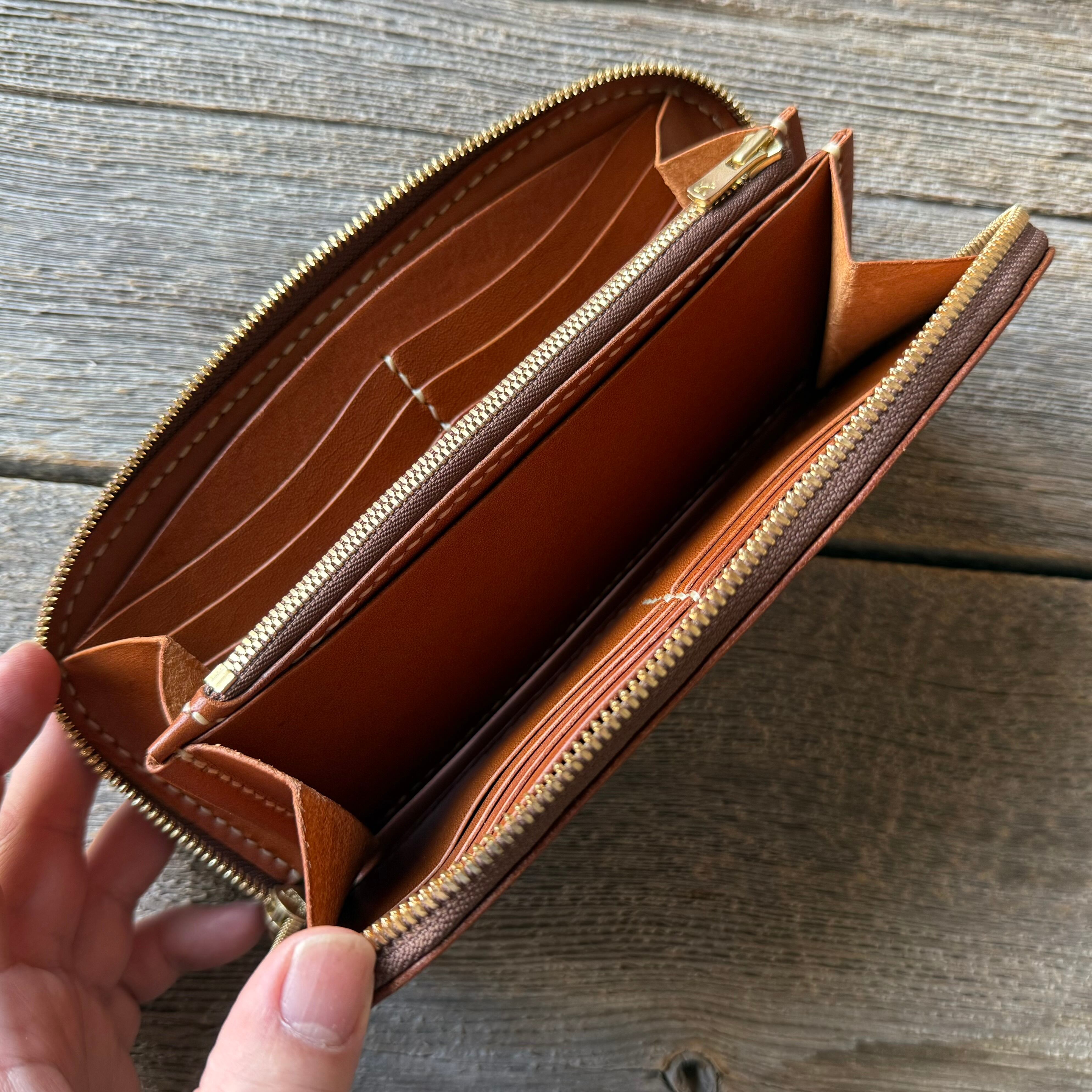 キャッシュレス化が進む中でも、「お金もカードもたっぷり持ち歩きたい」という方に人気のある定番アイテム。収納力抜群ながら、ファスナーでしっかり閉じることで見た目はすっきりと上品にまとまります。