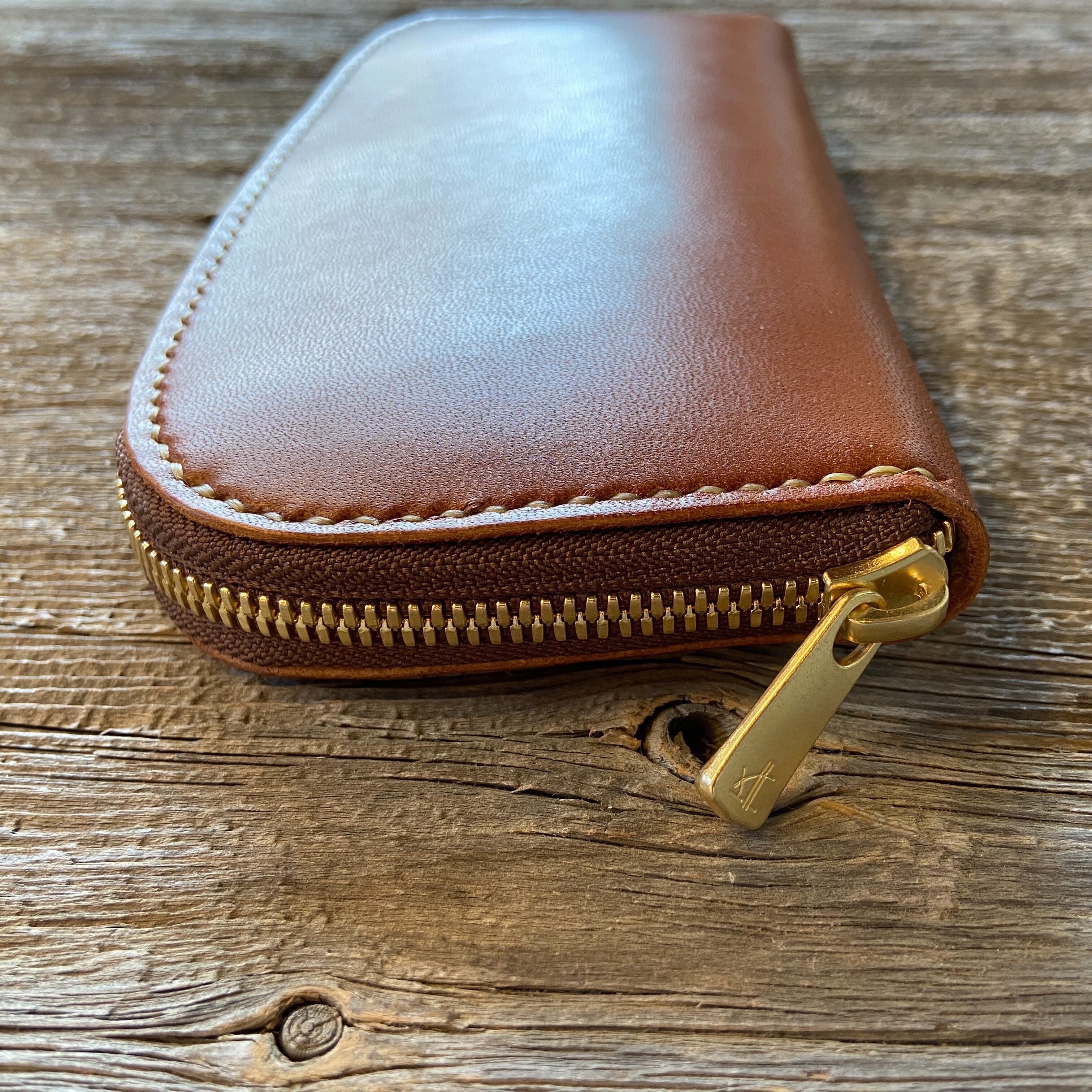 ファスナーにはYKKの最高級ライン「Excella」を採用。滑らかな使い心地と高級感が魅力で、全11色からお選びいただけます。革と同系色でシックにまとめるのはもちろん、あえて異なる色を選んでアクセントにするのもおすすめです。
