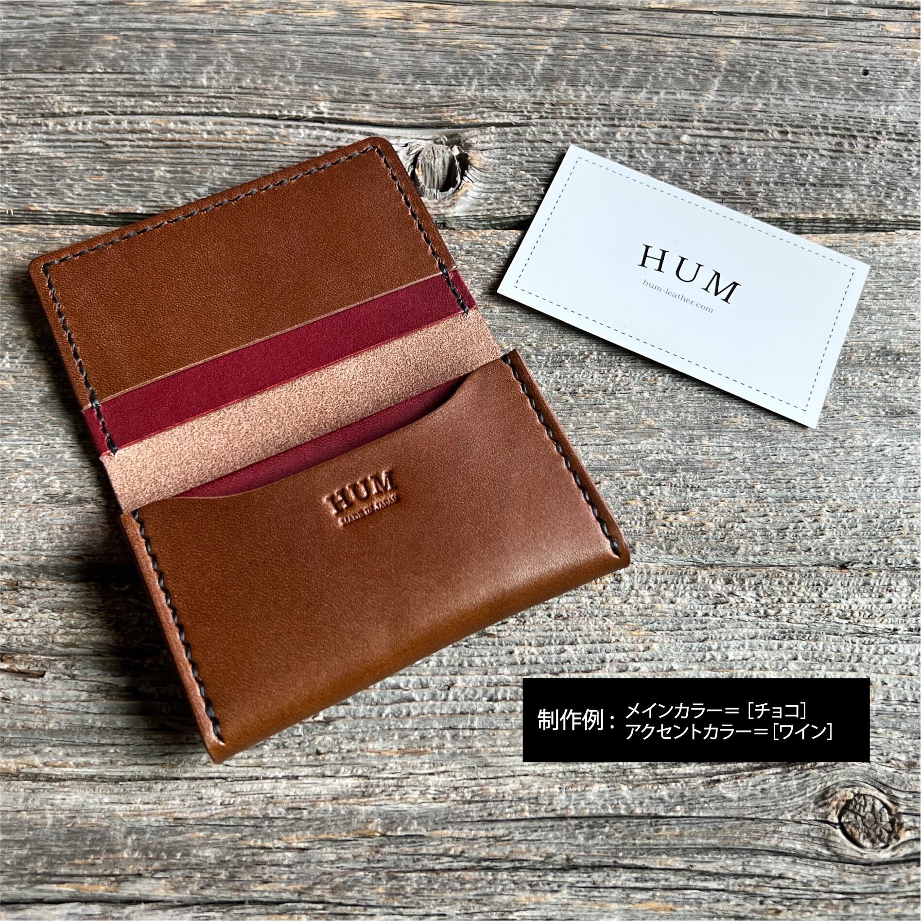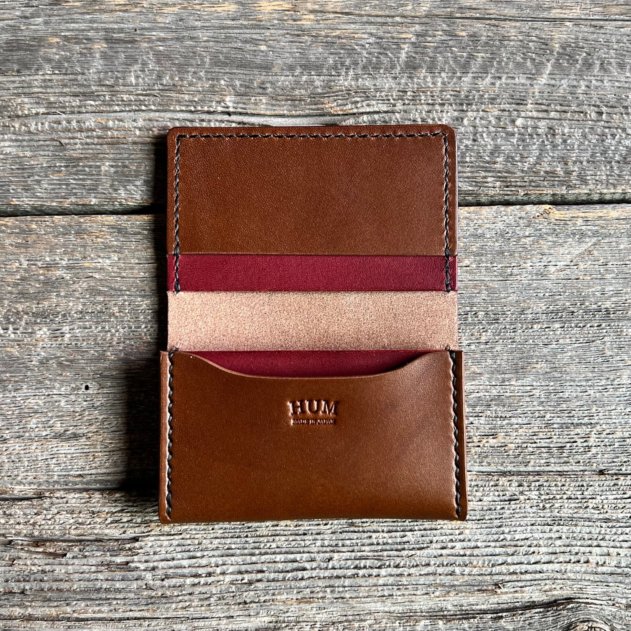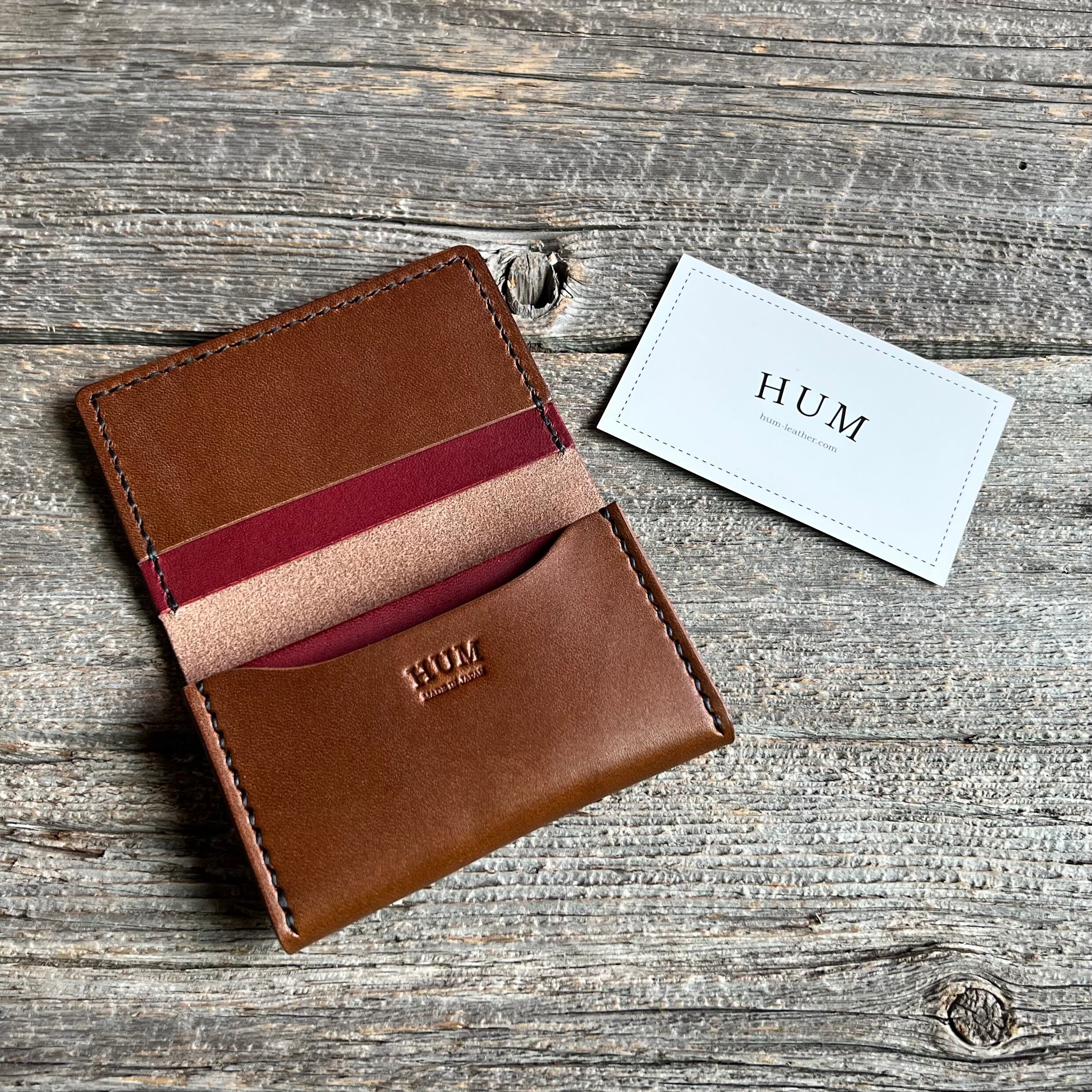 シンプルな形ながらパーツ数が多いため、2色の革を組み合わせると自然なアクセントが生まれます。配色次第で男性らしくも女性らしくも仕上げられるので、HUMのアイテムの中でもプレゼント用として人気の高い一品です。